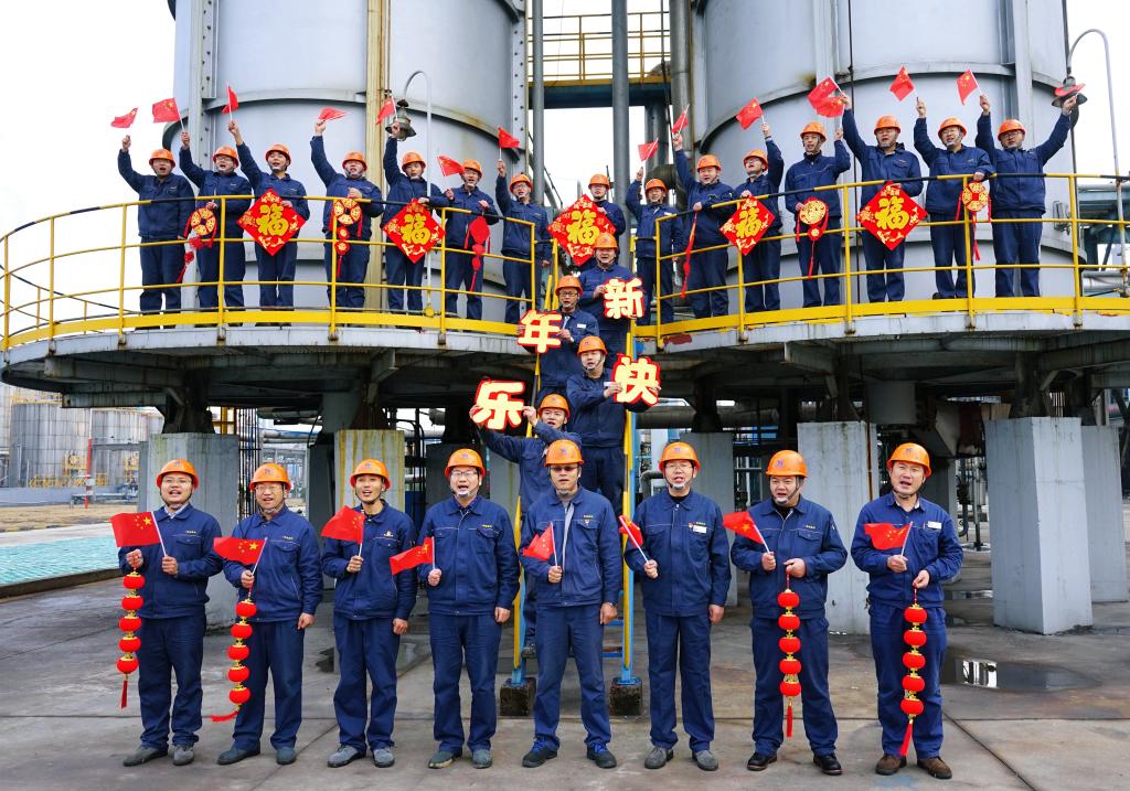 年初一,臨渙焦化公司精苯車間,利用班前會,把當天上班職工聚集在一起,歡聚一起,拍下一張喜慶祥和的“全家福”,車間黨支部書記劉升說:“這樣熱熱鬧鬧、紅紅火火,大家一起崗位過年是另外一種幸福。”