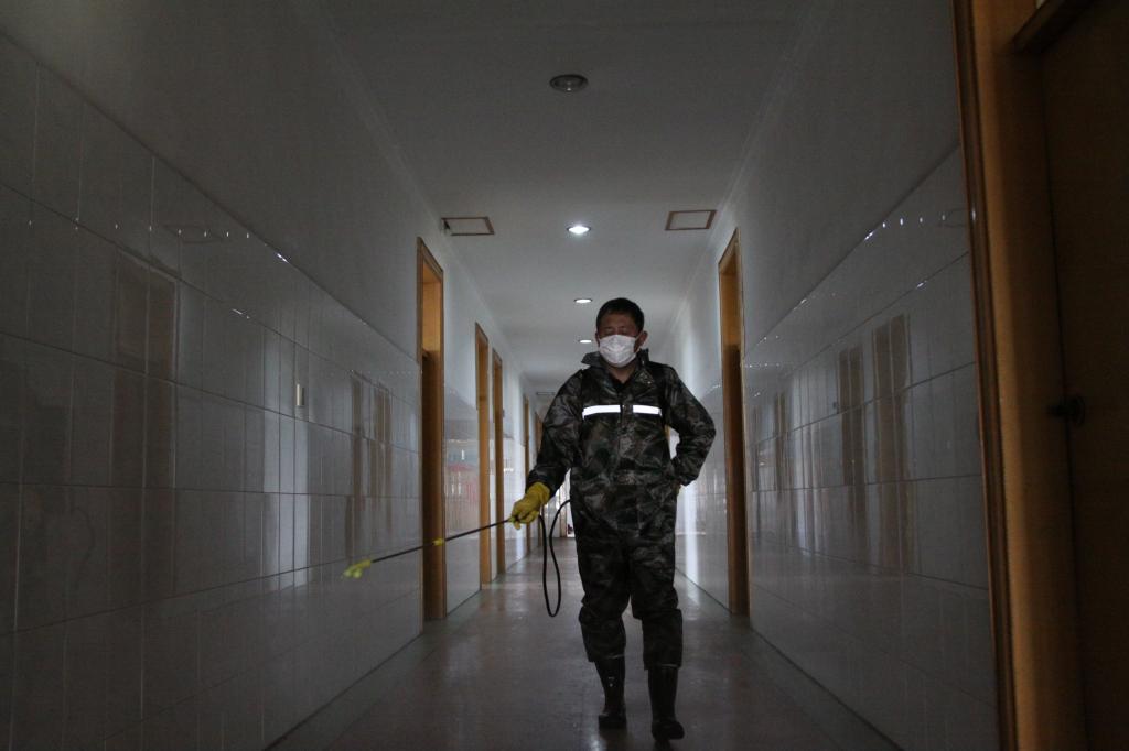 2月4日下午4:30,在皖北康復醫院南區大門口,筆者見到了“全副武裝”的康復治療中心副主任金濤,來不及多問一句,金濤便帶著消殺物品上了“戰場”。