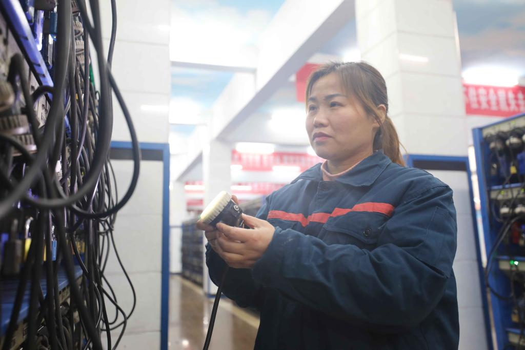 “這顆螺絲松動(dòng)了,你抓緊安排處理。”安全員朱建成把現(xiàn)場(chǎng)發(fā)現(xiàn)的問題反饋到班長(zhǎng)王磐。