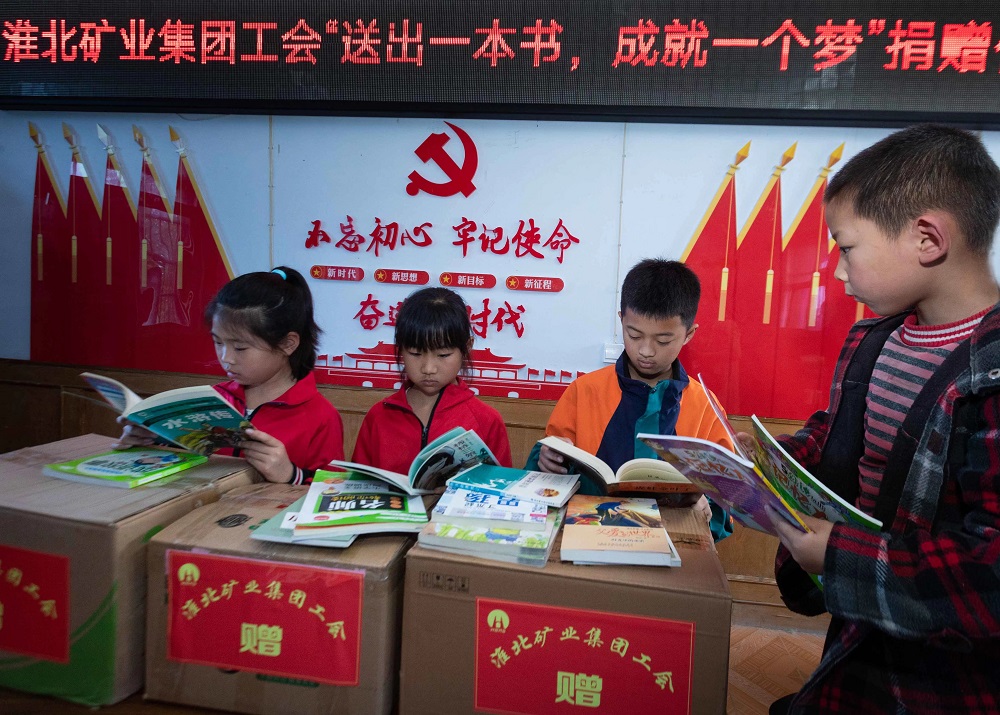 在碭山縣曹莊鎮捐贈儀式上,孩子們共收到淮北礦業集團捐獻的書籍1300多套,玩具160多個?!跋乱徊?,集團工會將持續關注曹莊鎮的教育事業,進一步加大對曹莊鎮的文化幫扶力度,豐富農村文化生活,助力鄉村振興?!奔瘓F工會相關負責人說。