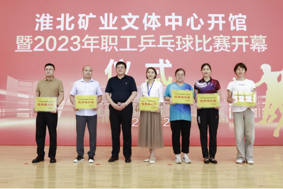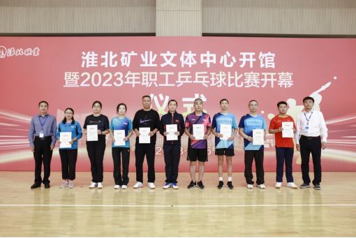 在中秋、國(guó)慶來(lái)臨之際,9月26至27日,淮北礦業(yè)集團(tuán)在新落成的文體中心舉辦“喜迎國(guó)慶、‘乒’搏有你”2023年職工乒乓球比賽,經(jīng)過(guò)兩天的激烈比拼,決出了男子團(tuán)體、女子團(tuán)體、男子單打、女子單打、優(yōu)秀組織獎(jiǎng)等各類(lèi)獎(jiǎng)項(xiàng),集團(tuán)工會(huì)第一副主席劉杰和工會(huì)、物業(yè)分公司相關(guān)負(fù)責(zé)人為獲獎(jiǎng)單位和選手頒獎(jiǎng)。