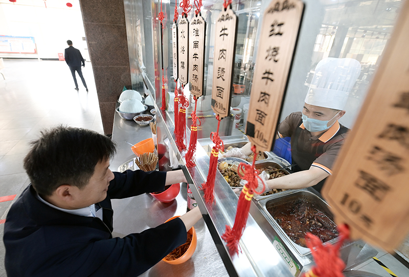 孫疃礦引進專業(yè)化餐飲公司,食堂管理規(guī)范、物美價廉,提高了職工的就餐體驗。(陳更 攝)