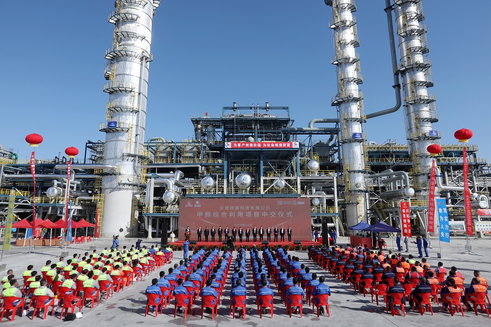 10月20日,碳鑫科技公司舉行甲醇綜合利用項目中交儀式,由施工建設(shè)階段全面轉(zhuǎn)入生產(chǎn)準(zhǔn)備階段。(王明明 攝)