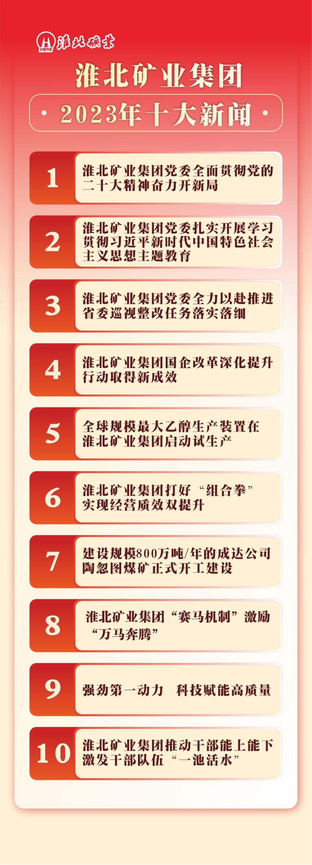 2023年,對淮北礦業集團來說,是極不平凡、極為不易的一年。一年來,面對復雜嚴峻的市場形勢和艱巨繁重的發展任務,集團上下深入開展學習貫徹習近平新時代中國特色社會主義思想主題教育,堅持“以學鑄魂、以學增智、以學正風、以學促干”,頂住壓力、保持定力、拼盡全力,萬眾一心落實“566”年度總體部署,以趕考心態、滿格狀態、拼搏姿態交出了一份精彩答卷。企業發展逆勢而進、破浪前行,全年營業收入、利潤總額均創歷史新高,穩居全省“賽馬”第一方陣。