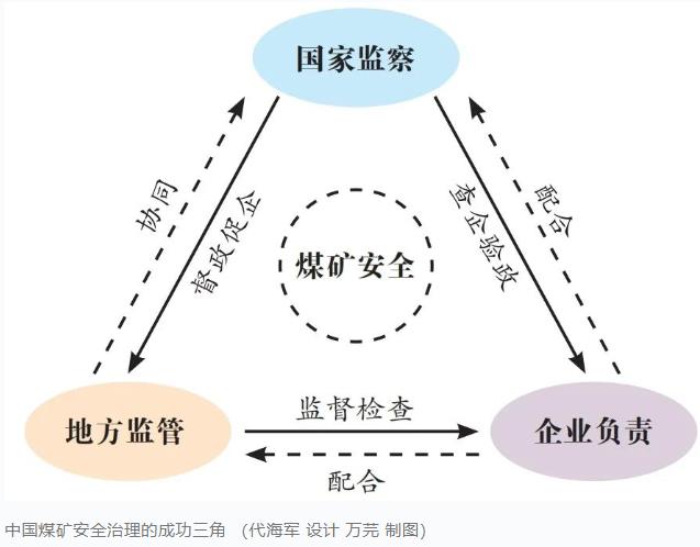 “國家監(jiān)察、地方監(jiān)管、企業(yè)負(fù)責(zé)”,搭建起煤礦領(lǐng)域大安全大應(yīng)急的框架,既是應(yīng)急管理組織理論的重大創(chuàng)新,也是法治化建設(shè)的最新成果。三者在煤礦安全治理中扮演不同角色,相互聯(lián)系、相互作用,共同構(gòu)成了煤礦安全治理不可分割的重要組成部分。