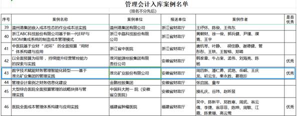 近日,2023年度財(cái)政部管理會(huì)計(jì)案例征集和遴選結(jié)果公布。淮北礦業(yè)股份有限公司財(cái)務(wù)部《數(shù)字技術(shù)賦能財(cái)務(wù)管理智能化轉(zhuǎn)型——基于淮北礦業(yè)集團(tuán)的管理實(shí)踐》榮登榜單,并榮獲優(yōu)秀案例。