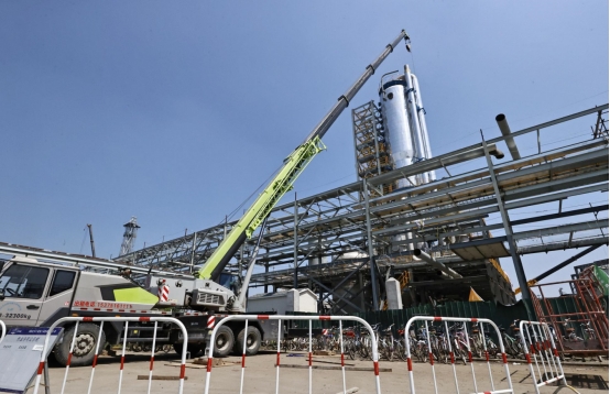 “十四五”專班PBAT項(xiàng)目一名工人在加工彎管。