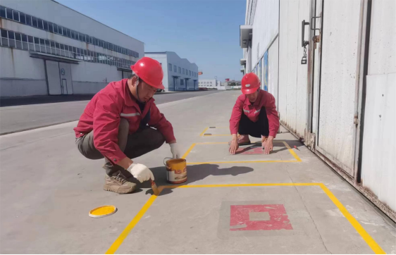 在AGV高架庫出入口,張勇、趙自衛(wèi)正在忙碌著。“這是干什么呢”“返庫位、出貨位標(biāo)志已經(jīng)模糊,導(dǎo)致探頭識(shí)別力減弱,為了使標(biāo)識(shí)更加規(guī)范鮮明,使貨位識(shí)別更加快速精準(zhǔn),我們要重新給予畫線。”只見他們互相配合,先用透明膠帶把黃線邊緣粘上,然后用黃色油漆刷新。