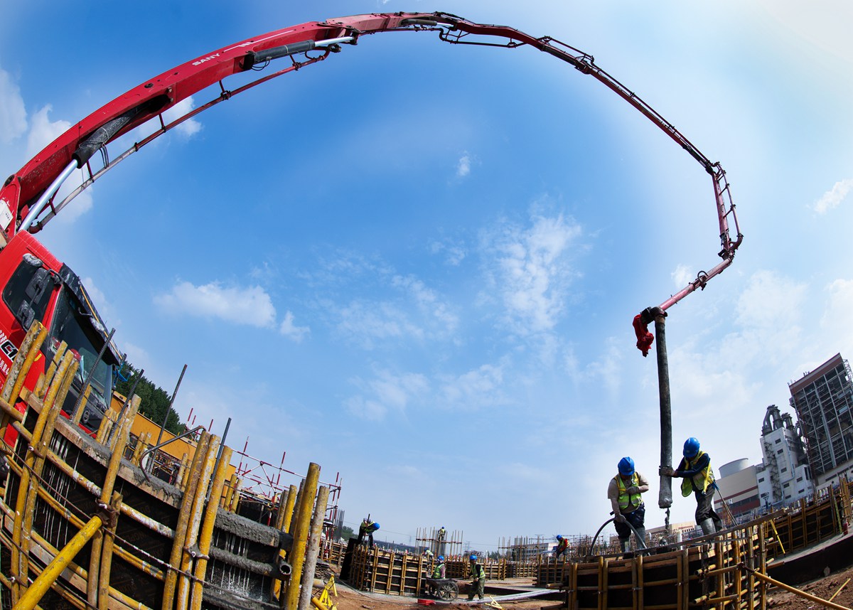 泵車正在澆注聚能發(fā)電公司機(jī)組項目鍋爐承臺短柱