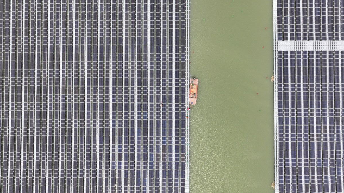 5月11日,航拍電力分公司青東塌陷區(qū)28MW水面光伏發(fā)電項目建設(shè)現(xiàn)場