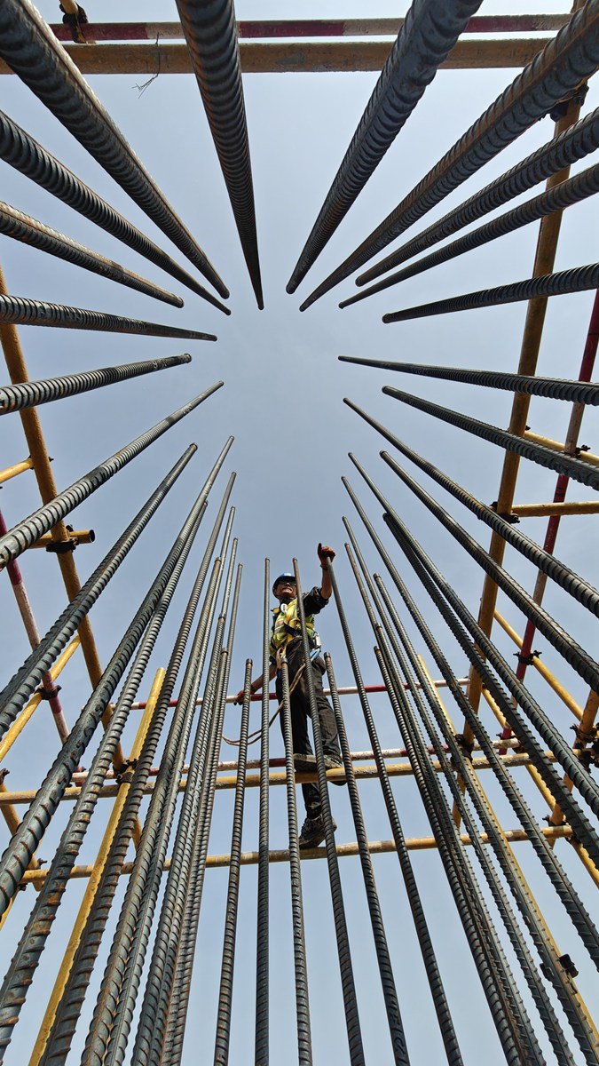 5月13日,工人在聚能發(fā)電公司機(jī)組項目建設(shè)現(xiàn)場綁扎鋼筋