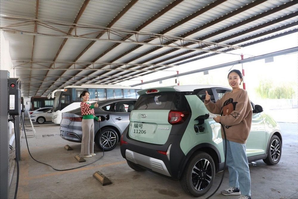 桃園礦職工在礦內為新能源私家車充電。(陳敏奎 攝)