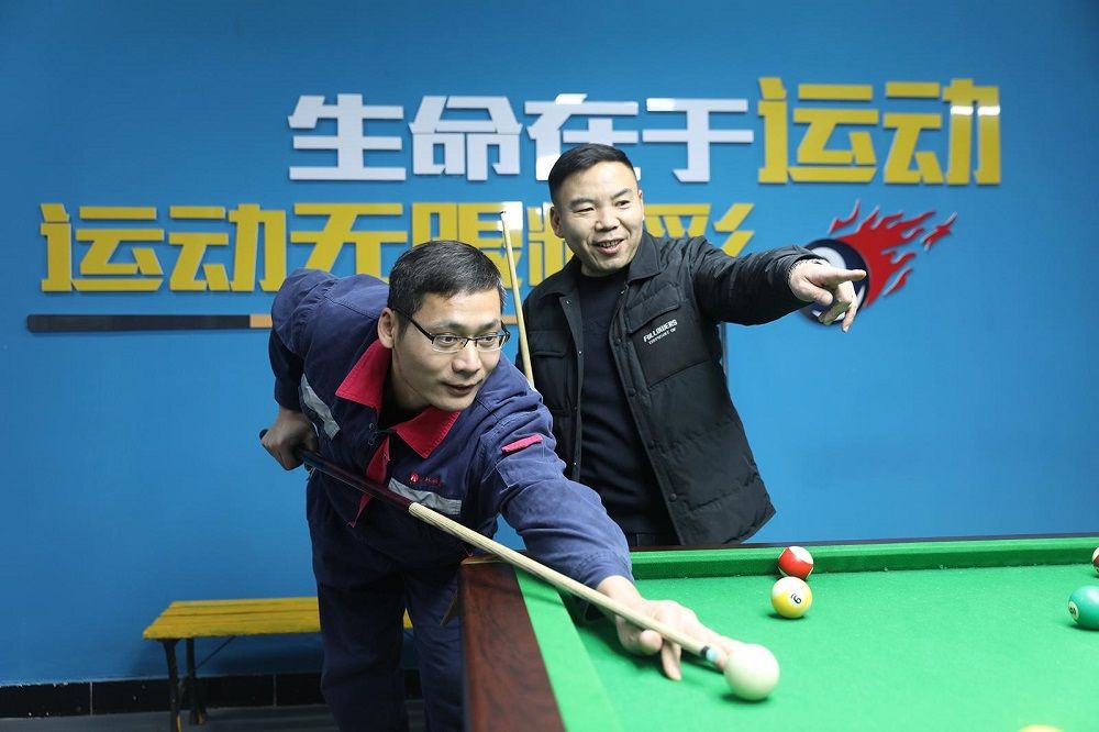 下班后,袁店二礦職工在活動中心休閑娛樂。(王連生 攝)