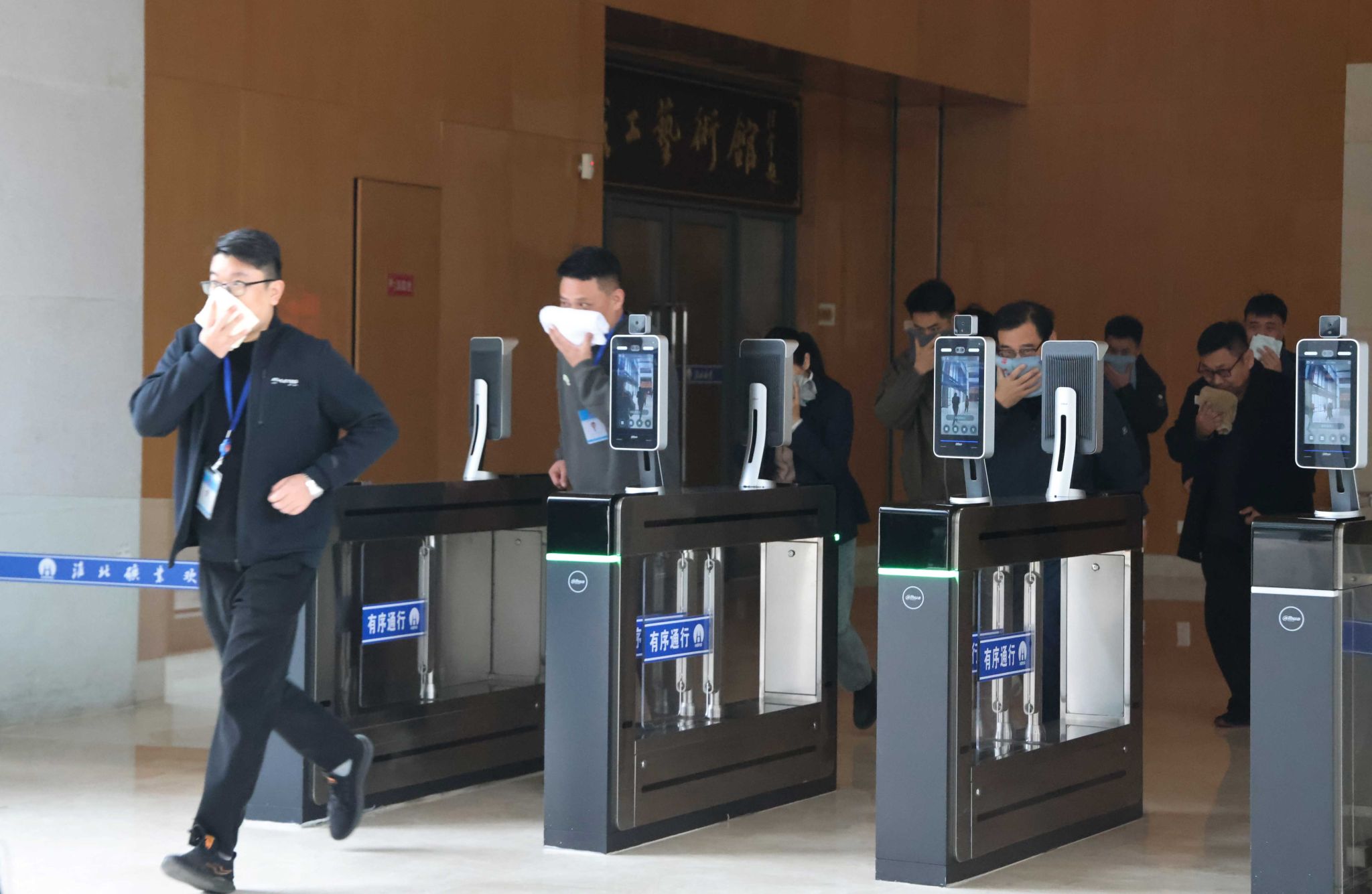 上午8時52分,演習正式開始。模擬火情設定在西塔10層,集控中心發現警報后,迅速啟動火災應急處置預案,同步上報值班領導、調派滅火組前往撲救,并模擬撥打119報警。隨即,樓內應急廣播系統啟動,播報火情信息,并下達全體人員通過步梯緊急疏散撤離的指令。