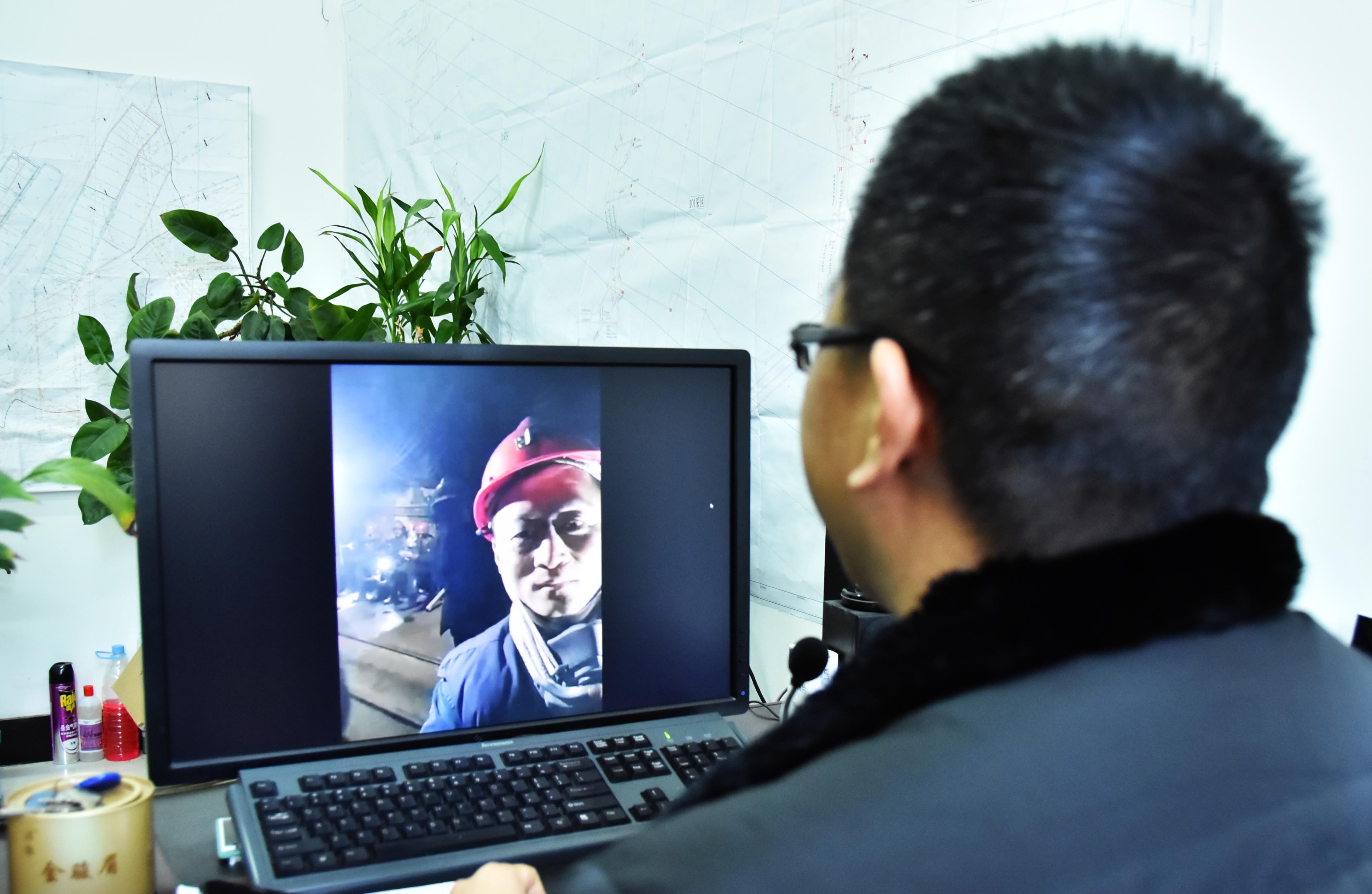 淮北礦業(yè)集團(tuán)管理人員在地面通過單兵裝備與井下工作人員視頻連線