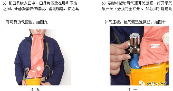 10)上述操作完成后(操作要求在30秒內完成),開始退離災區。途中感到吸氣不足時不要驚慌,應放慢腳步,做深長呼吸,待氣量充足時再快步行走。