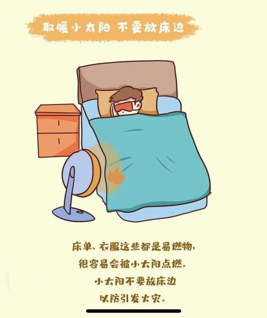 4.遠(yuǎn)離臥室:煤爐、炭火等取暖設(shè)備不要直接放在臥室;應(yīng)遠(yuǎn)離易燃、易爆物品。