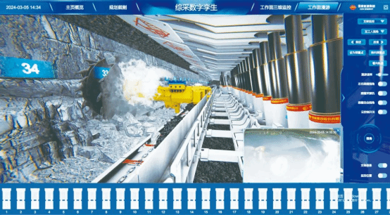 圖為位于陜西省榆林市的國家能源集團國神公司三道溝煤礦井下綜采工作面生產數字孿生場景。